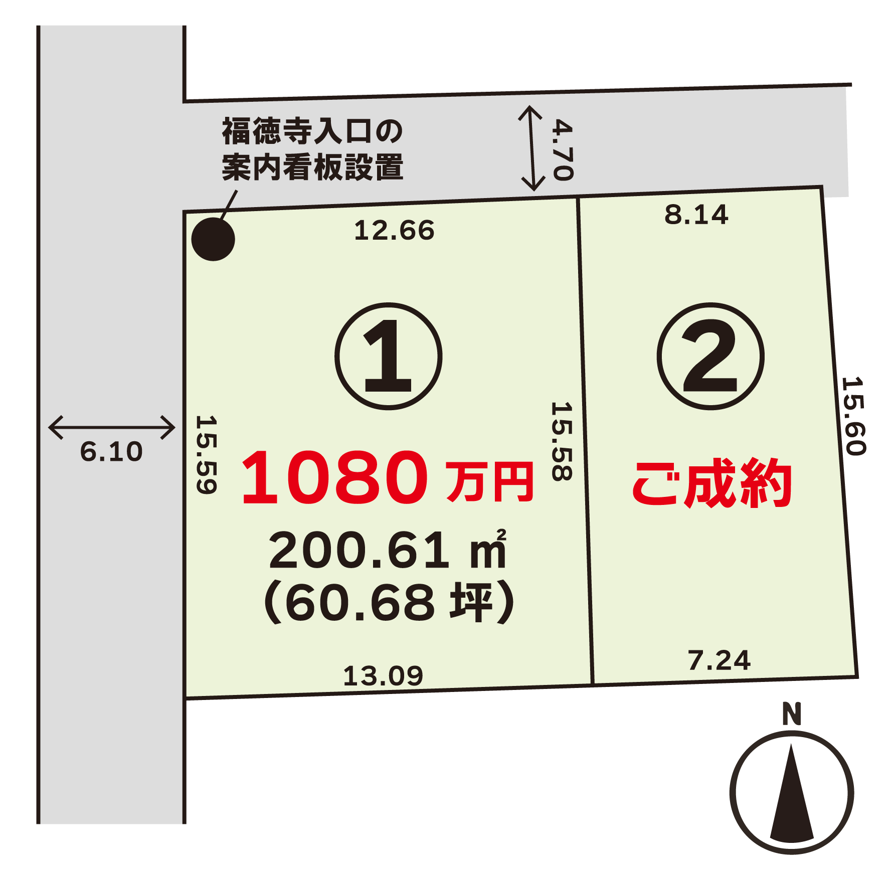 ※①号地、敷地内に案内看板が立ちます。